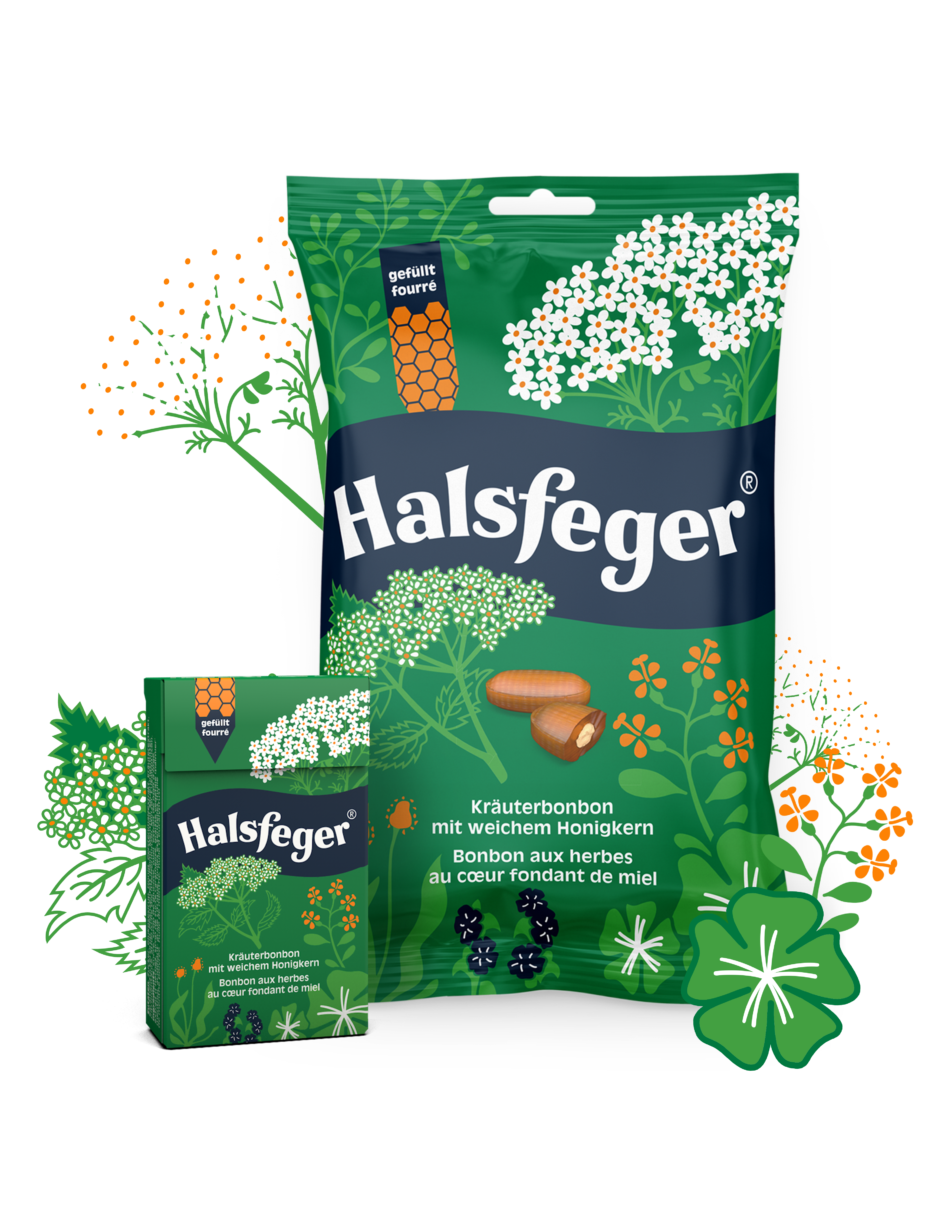Fast 40 Jahre blieb die Halsfeger-Verpackung nahezu unverändert. Es war an der Zeit, dem charmanten Retro-Stil eine blumige, verspielte, frische Brise einzuhauchen. Dabei bleiben die charakteristischen Farben Grün, Blau und Orange erhalten.